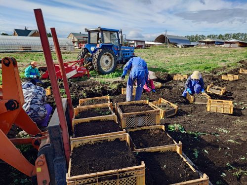 加工用キャベツ8ha,とじゃがいも『男爵』が10ha、計18haが収穫できたので社員旅行を実施する。北海道の海鮮を堪能してもらった。いくら丼、三色丼、鮭親子丼はメンバーが変わっても人気がある食材で、みんな大好きを連発してくれた。