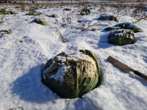 新商品の開発にも挑戦する。栽培している強みを生かし、圃場に(収穫せずに放置した)🥬キャベツ(名付けて雪の上キャベツ。降雪がないため雪の下になかなかならない)を利用して行者ニンニク、キャベツたっぷりの手作り餃子。冬期間限定で作業をして、屋外で自然冷凍する。投資はほとんどしない。