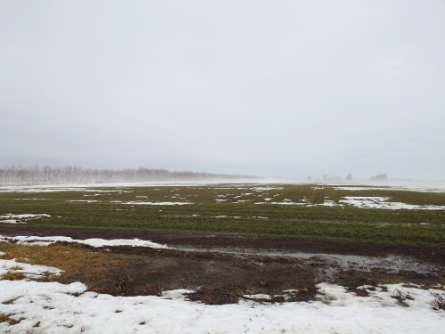 予想最高気温は10度を超えていた。晴れずに雨が降っているので、雪解けが思ったより進行は早い。