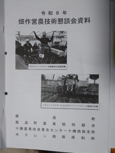 1月は今年の営農計画に向けての勉強会がある。JA鹿追町と農業機械ディーラー、大学など官民での共同開発している、作業人員を大幅に減員可能な機械の発売が目の前に迫っている。