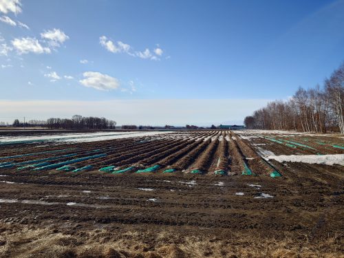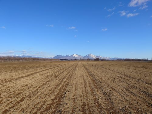今年の冬はある程度降雪があるが、風が強く雪が飛んでなくなっている。雪のない状態はもうかれこれ1ヶ月にはなるでしょう。大雪山の麓は風が強く凍結も進行していて、越冬している長芋は少しだけ凍結を心配している。帯広市近郊は真っ白に雪が残っている・・・。