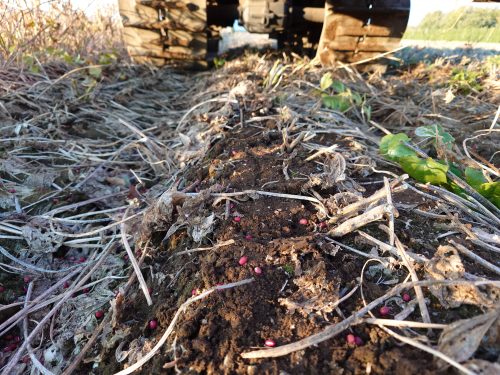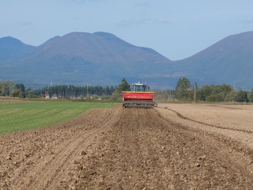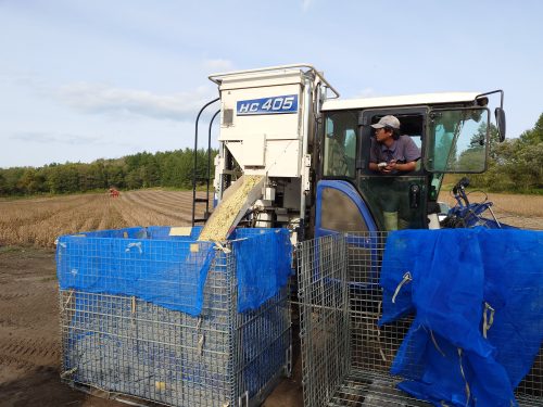 10日前に播種した小麦は青々と出芽している。それを横目に、じゃがいも掘りとり後に小麦播種を実施している。あともう少しです。ほぼ職員に任せて作業を進めているが、覚えるのが早くて感心している。来年は全て任せることになるでしょう。