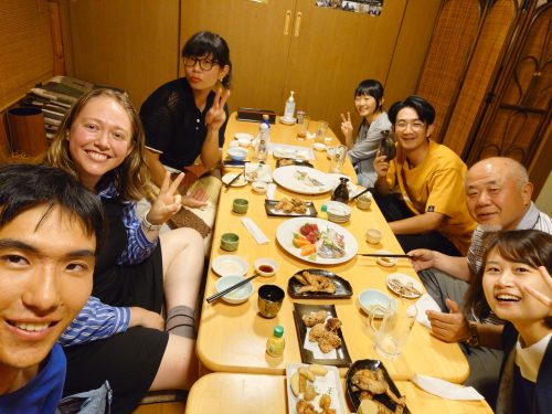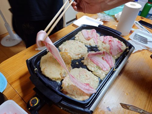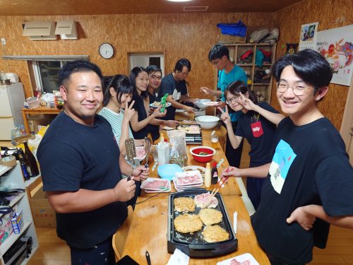 ワーキンングホリデーの歓送迎会も時々開催して、美味しいもの食べ、飲んで農作業の疲れを癒す。破棄される農場産キャベツをたくさん使用したお好み焼きを美味しくいただく。