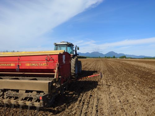 9月24日秋まき小麦の播種がはじまる。同時にじゃがいも収穫、キャベツ収穫も行うので忙しい毎日を送る。Finland製小麦播種ドリルで約20haを播種して、来年7月に収穫をする。