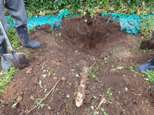 JAと普及センターの方立ち合いで、2回目のウイルス病検査をする。疑われる長芋を掘り検査に提出した。センターの方曰く、疑われる検体はごく僅かで健康体の長芋です。とこのような感想をもらい安心する。